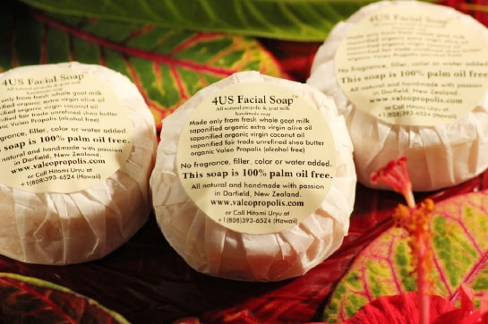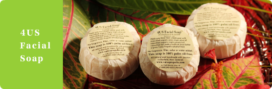 今回、この『4USフェイシャルソープ(4US Facial Soap)』を製造するに際し、バレオプロポリスの製造元であるセドラス社の社長さんからも、バレオプロポリスが入ったオーガニックソープとしてお墨付きをいただき、応援していただいています(とても嬉しく、たいへん心強いです!)。
